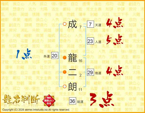 成龍二朗さんの総運は36画の3点!