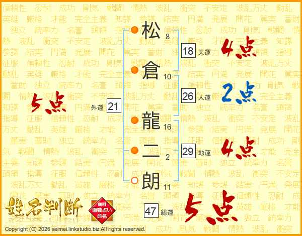 松倉龍二朗さんの総運は47画の5点!