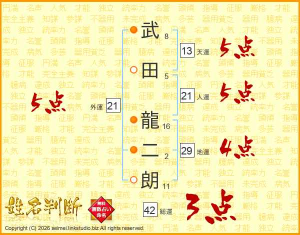 武田龍二朗さんの総運は42画の3点!