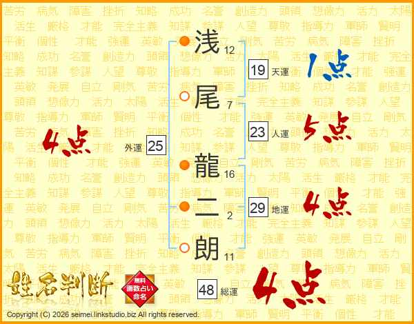 浅尾龍二朗さんの総運は48画の4点!