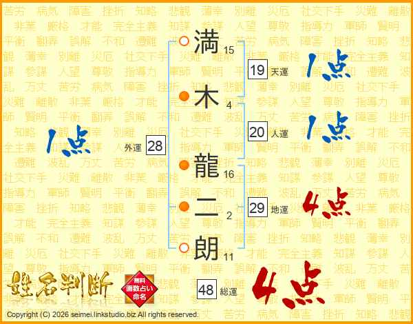 満木龍二朗さんの総運は48画の4点!