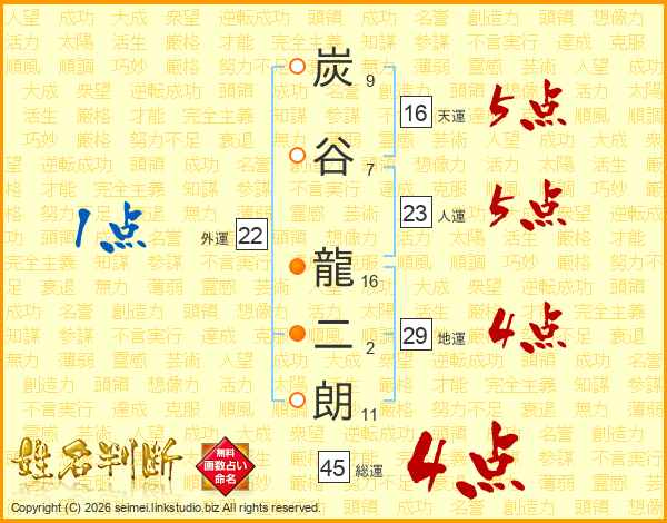 炭谷龍二朗さんの総運は45画の4点!