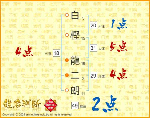 白樫龍二朗さんの総運は49画の2点!