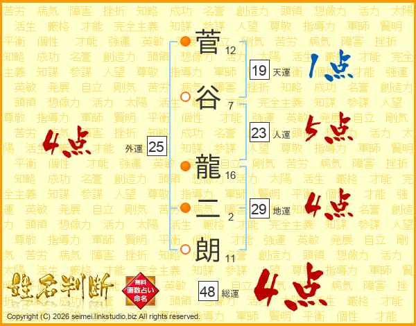 菅谷龍二朗さんの総運は48画の4点!