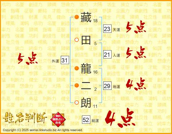 藏田龍二朗さんの総運は52画の4点!