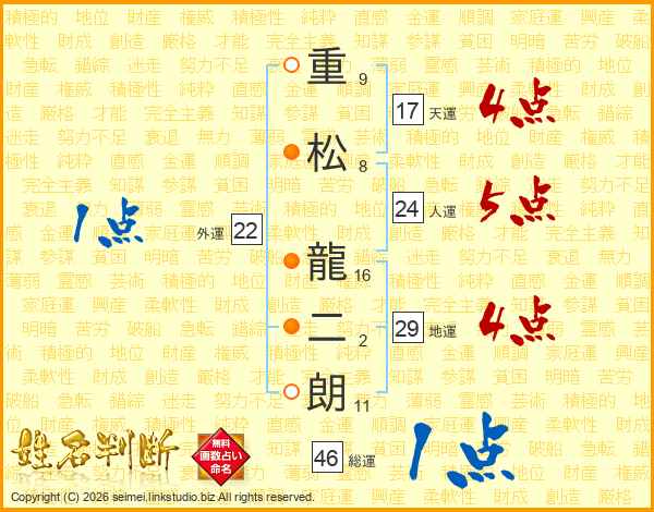 重松龍二朗さんの総運は46画の1点!