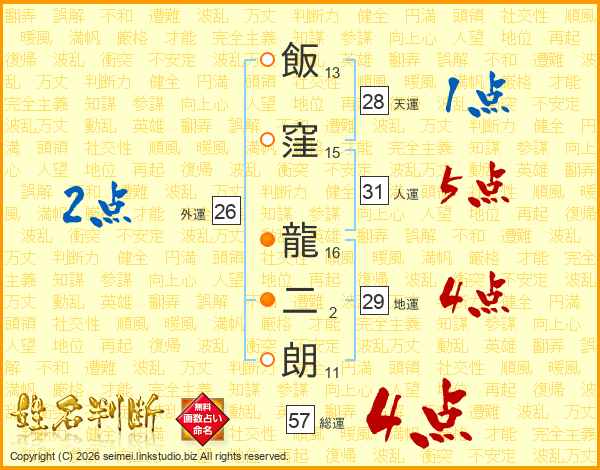 飯(13画)窪(15画) 龍(16画)二(2画)朗(11画)