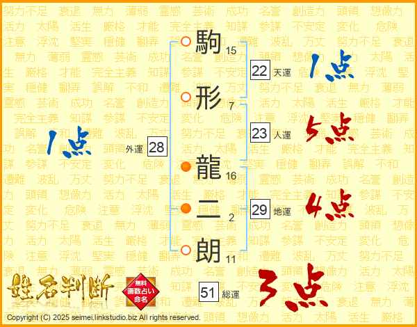 駒形龍二朗さんの天運は22画の1点!