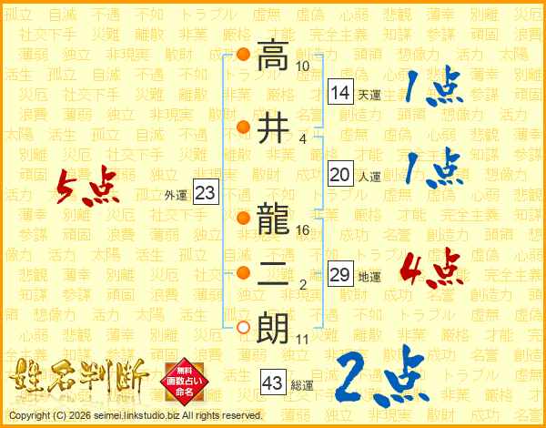 高井龍二朗さんの総運は43画の2点!
