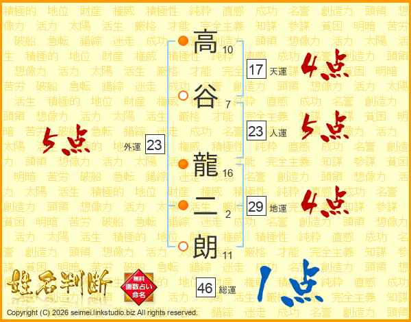 高(10画)谷(7画) 龍(16画)二(2画)朗(11画)
