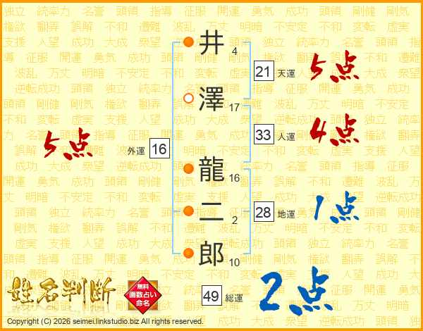 井澤龍二郎さんの総運は49画の2点!