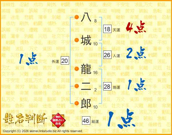 八城龍二郎さんの総運は46画の1点!