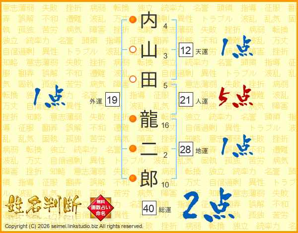 内山田龍二郎さんの総運は40画の2点!