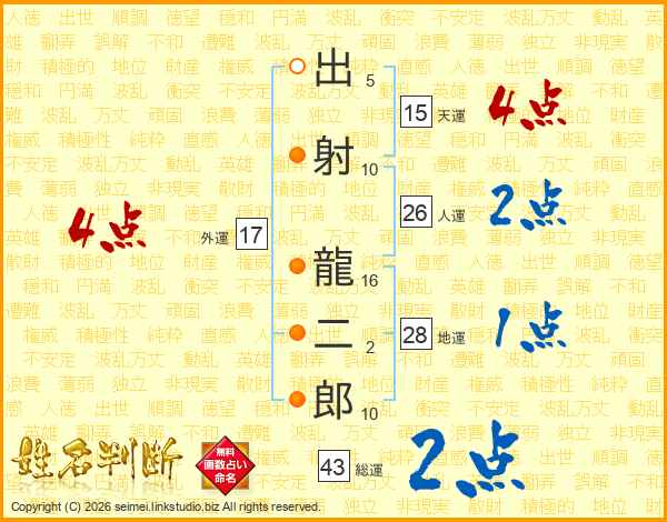 出射龍二郎さんの総運は43画の2点!