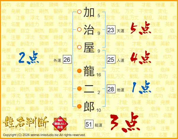 加治屋龍二郎さんの総運は51画の3点!