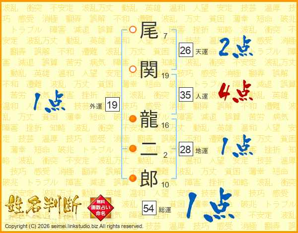 尾関龍二郎さんの天運は26画の2点!