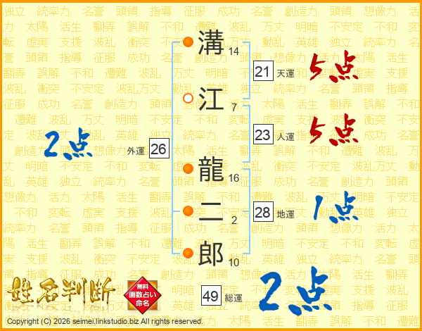 溝江龍二郎さんの総運は49画の2点!