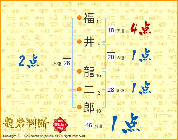 福井龍二郎さんの総運は46画の1点!