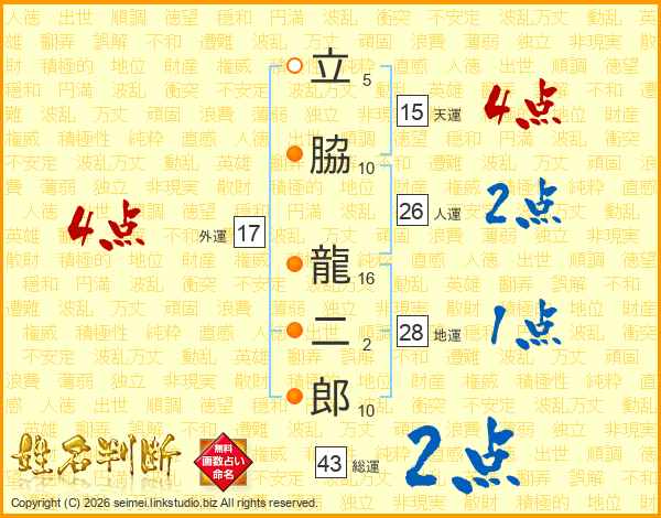 立(5画)脇(10画) 龍(16画)二(2画)郎(10画)