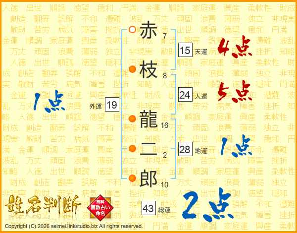 赤(7画)枝(8画) 龍(16画)二(2画)郎(10画)