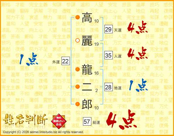 高麗龍二郎さんの総運は57画の4点!