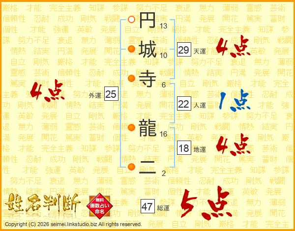 円城寺龍二さんの総運は47画の5点!