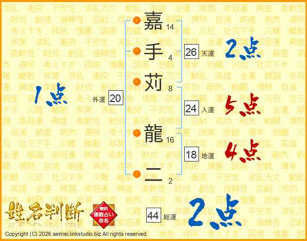 嘉手苅龍二さんの天運は26画の2点!