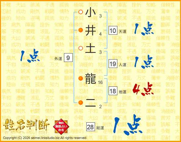 小(3画)井(4画)土(3画) 龍(16画)二(2画)
