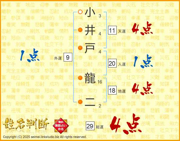 小(3画)井(4画)戸(4画) 龍(16画)二(2画)