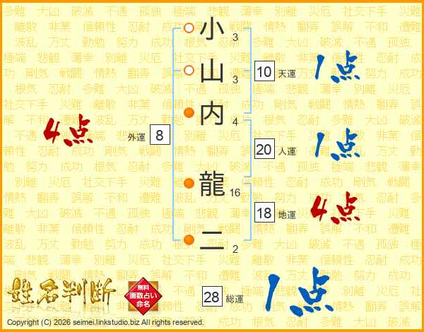 小山内龍二さんの総運は28画の1点!