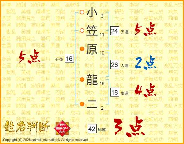 小笠原龍二さんの総運は42画の3点!