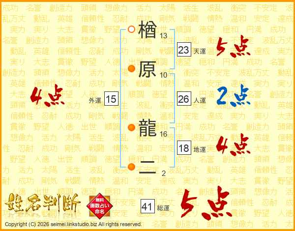 楢原龍二さんの総運は41画の5点!