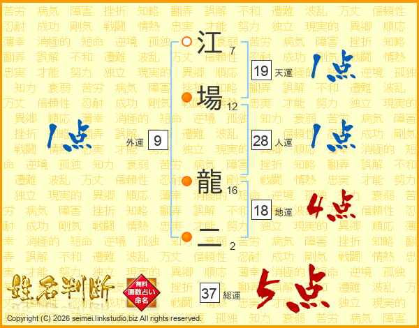 江場龍二さんの総運は37画の5点!