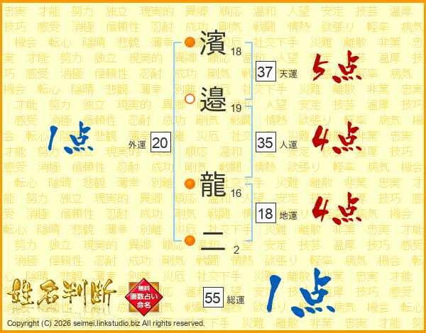 濱邉龍二さんの天運は37画の5点!