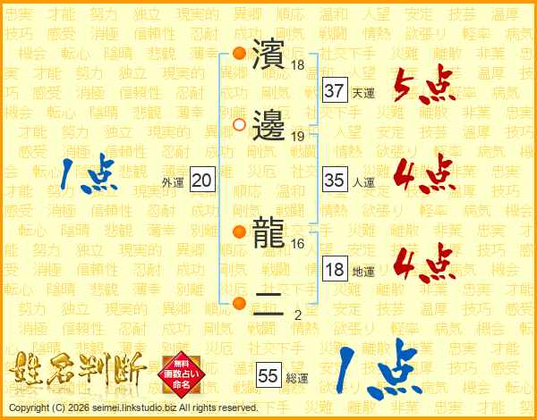 濱(18画)邊(19画) 龍(16画)二(2画)