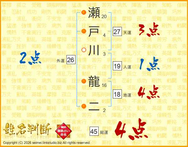瀬戸川龍二さんの総運は45画の4点!