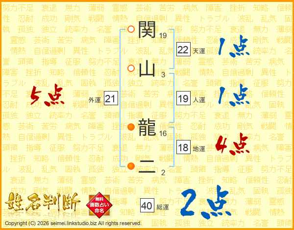 関山龍二さんの外運は21画の5点!