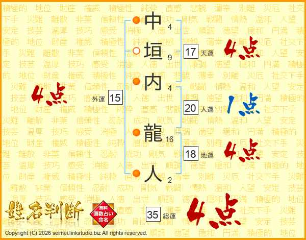 中垣内龍人さんの総運は35画の4点!