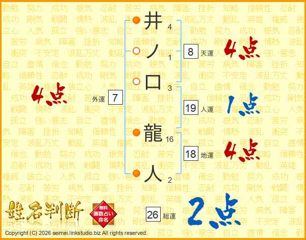 井(4画)ノ(1画)口(3画) 龍(16画)人(2画)
