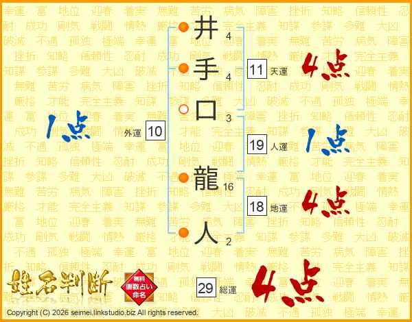 井(4画)手(4画)口(3画) 龍(16画)人(2画)