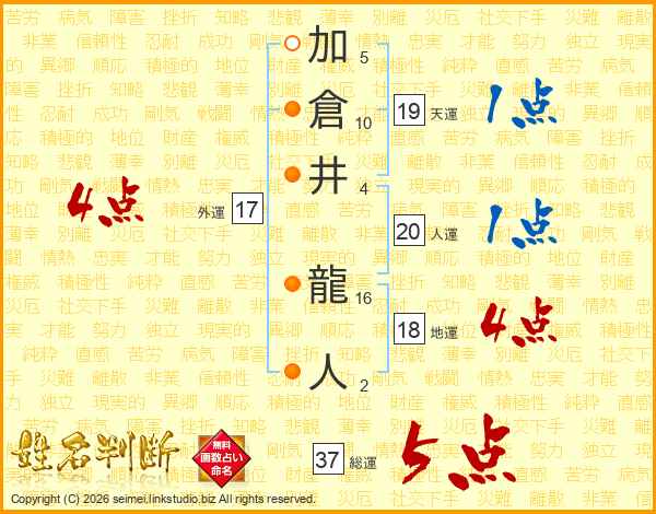 加倉井龍人さんの総運は37画の5点!