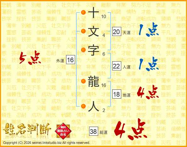 十文字龍人さんの総運は38画の4点!