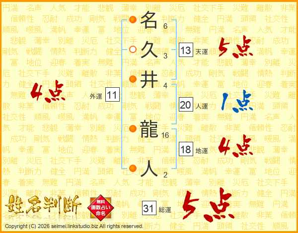 名久井龍人さんの総運は31画の5点!