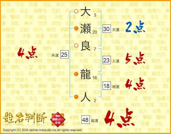 大瀬良龍人さんの天運は30画の2点!