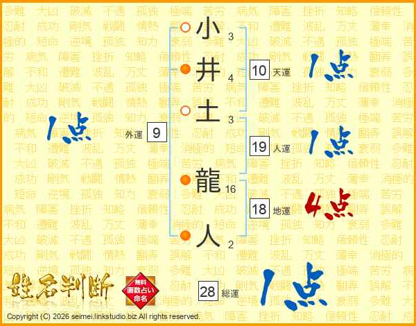 小井土龍人さんの総運は28画の1点!