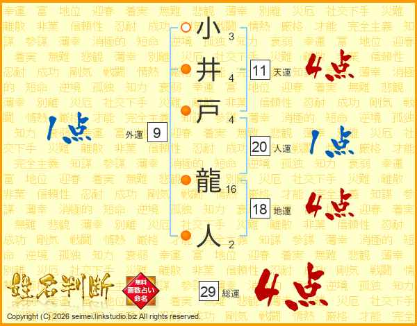 小(3画)井(4画)戸(4画) 龍(16画)人(2画)