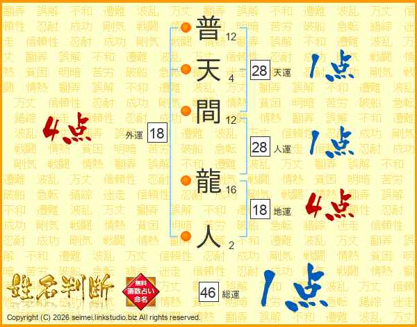 普天間龍人さんの総運は46画の1点!