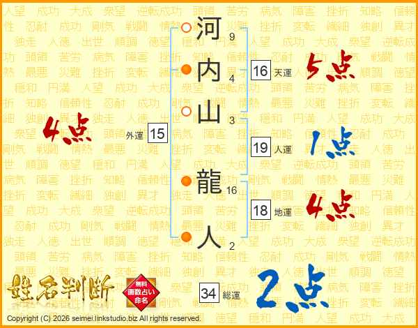 河(9画)内(4画)山(3画) 龍(16画)人(2画)