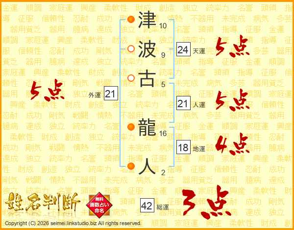津波古龍人さんの天運は24画の5点!