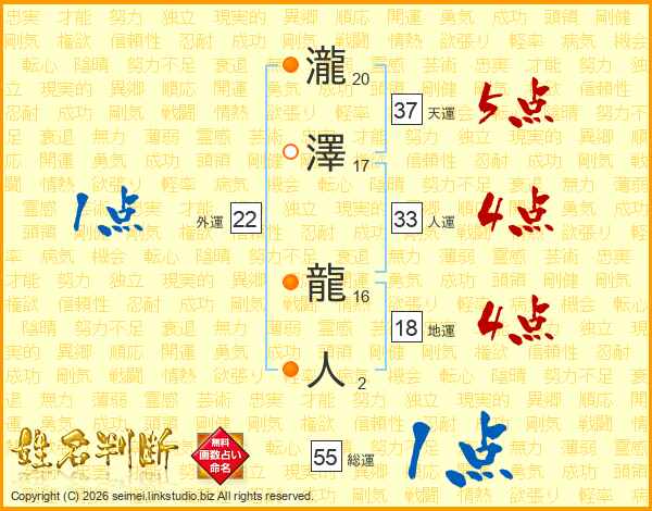 瀧澤龍人さんの総運は55画の1点!